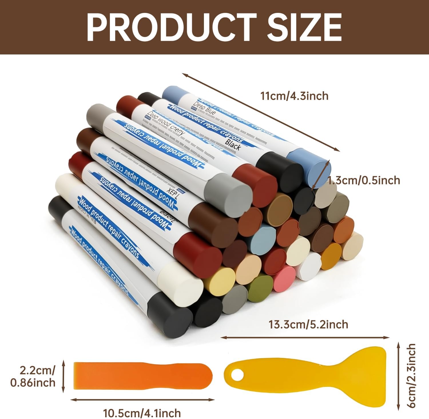 30+2P Wood Filler Sticks, 30 Colos Wood Filler Putty Wax Crayons Furniture Repair Kit Putty Stick for Baseboard Cabinets Furniture Floors(with 2 Scrapers)