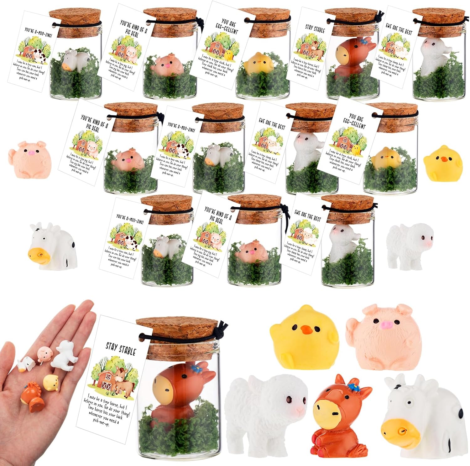 Features: Diverse and Fun Designs: These 35 sets of mini resin animals come in 5 styles, each set including a mini resin animal figurine, a card, a glass bottle, and artificial moss. Perfect for expressing gratitude and care to employees, colleagues, friends, teachers, students, etc. Each gift features unique animal designs and humorous puns, bringing smiles and warmth. High-Quality Materials and Ideal Size: The mini animals are made from durable resin, the cards are printed on thick 300g double copper paper, and the glass bottles are transparent and heat-resistant, showcasing exquisite craftsmanship. The size of each gift is compact and portable, making them suitable for various occasions such as birthdays, holidays, thank-yous, and commemorative events. Specifications: Material: resin, double copper paper, glass Color: multicolor Package includes: 35 x Mini resin animals 35 x Inspirational cards 35 x Glass Bottles 35 x Artificial mosses Notes: Manual measurement, please allow slight errors on size. The color may exist a slight difference due to different screen displays.