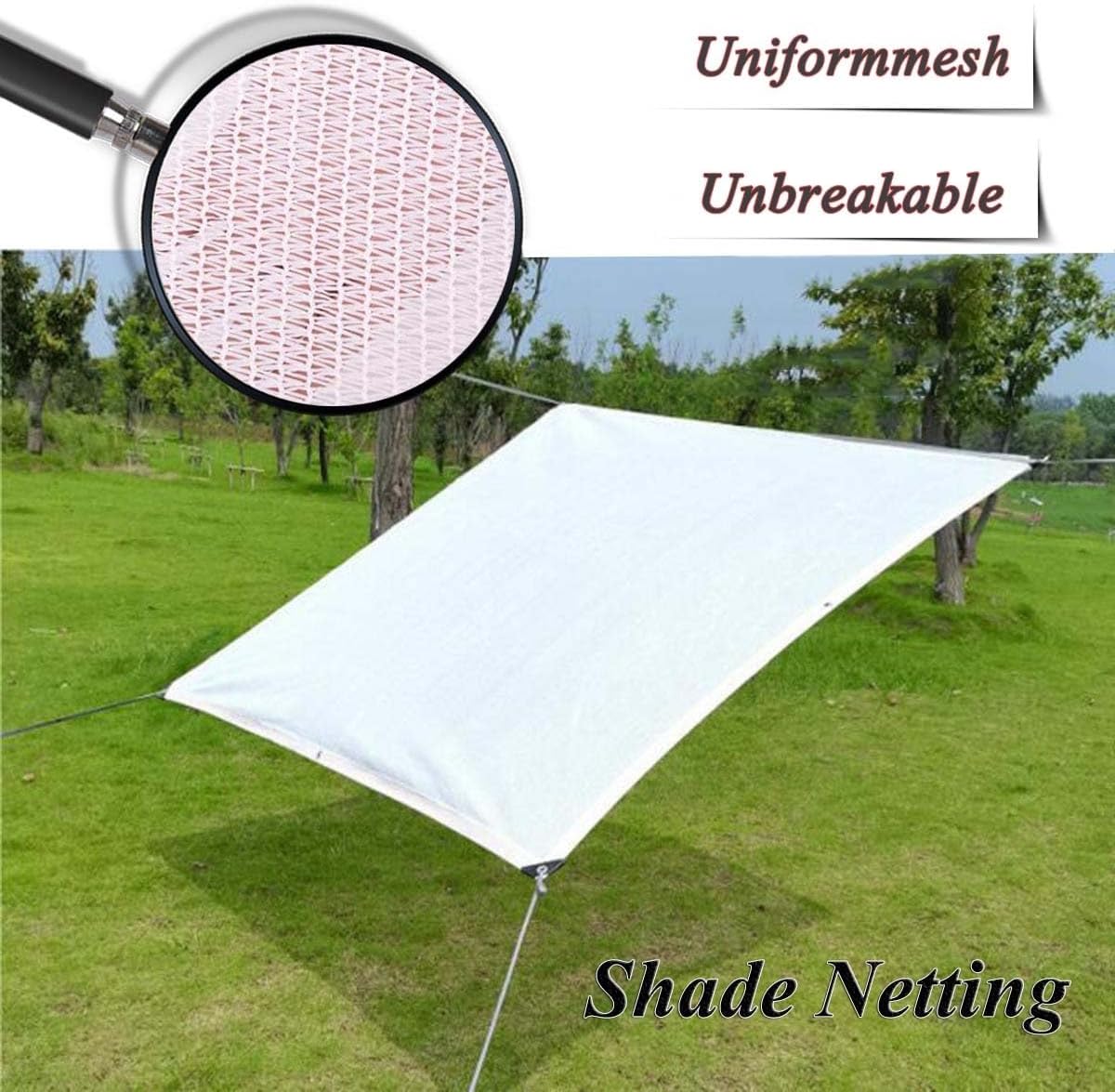 It will provide shade from sun while allowing cool breeze to enter through mesh.Ideal for Patio swimming pool, carports or other outdoor areasShade cloth blocks up UV rays, dramatically lowering temperature and creat a cool comfortable outdoor space.rectangular outdoor shade net for gardens, balconies, terraces, outdoor eventsBreathable mesh, plant cover, hot weather shading cover.Specification:Name: Shade Net, outdoor Shade SailColour: whiteShading rate: 55%Density: 3 needlesEdge: 6 lines edging