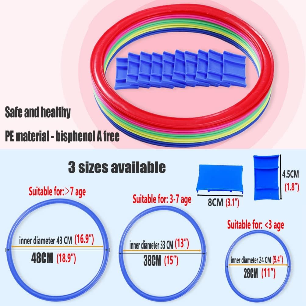 Hopscotch games are suitable for all ages, especially if you want to make sure your toddler or preschooler feels involved in the next family game night. But these fun jumping games are positive choices that help develop gross motor skills while also keeping everyone entertained—while younger kids struggle with balance and coordination.Kids will enjoy hours of fun with this creative twist on the classic playground game.⏩ Features:Rings and connectors are made from durable plastic, Smooth edges, safe to useIdeal for playrooms, kindergartens, bedrooms, etc.It’s a perfect activity for rainy days playing in the living room and for summertime playing in the backyard or front sidewalk!⏩ Specification:Quantity: 10 pcs toss rings, 10 connectorsMaterial: plastic (PE)Color: as the picture shows⏩ Package Include10 x Rings 10 x Connectors⏩ Note1. Due to the different shooting angle and display, the color may has a little error2. Manual measurement, the size may be a little error3. Children under 5 year old please supervised by adults⏩ We provide 100% perfect customer service, if you have any questions, please feel free to contact us, we will do our best to help you solve your problem.
