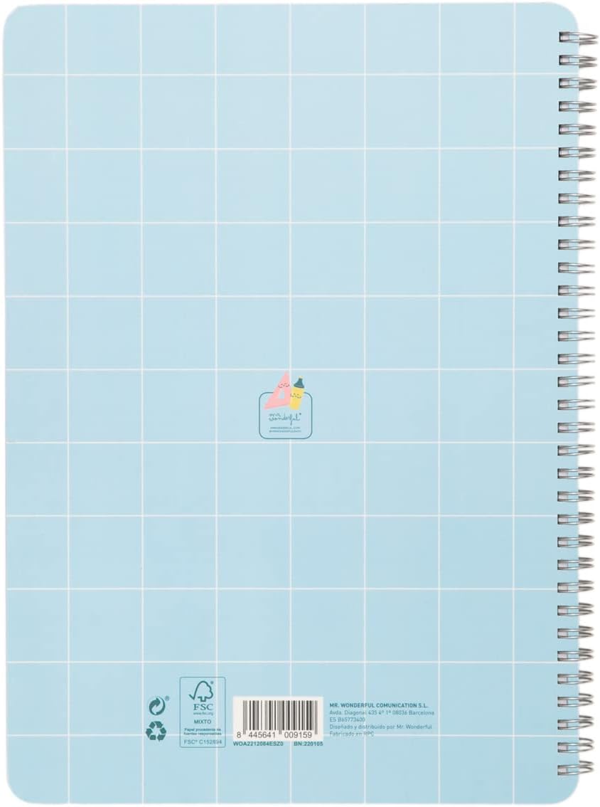 Product features: - A4 notebook with spiral binding. - With hardcover and 80 square sheets of 80 grams. inside it. - Includes a sticker sheet