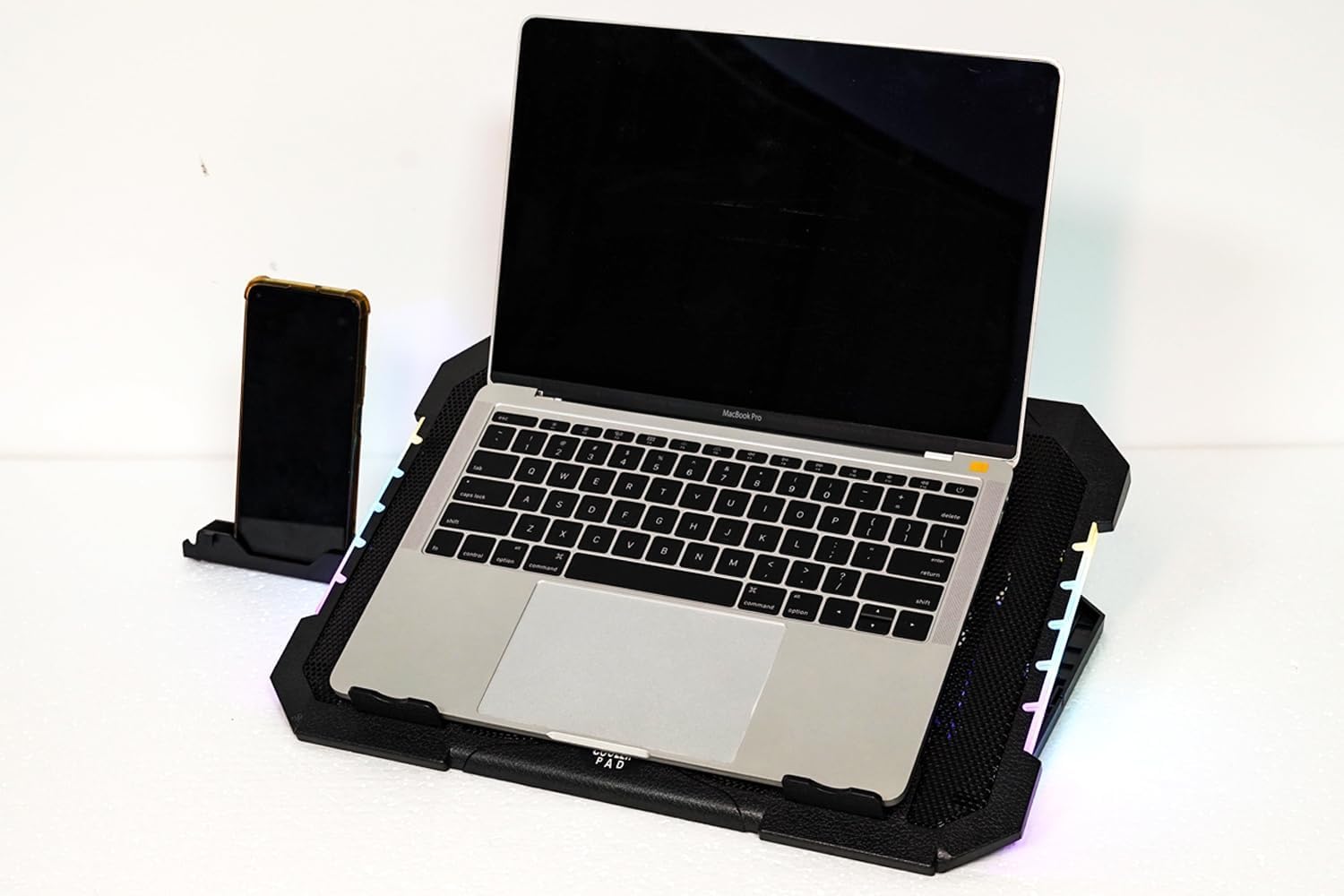 KEROLFFU RGB Gaming Laptop Cooling Pad 17-12Inch 4Fans (Customized RGB Sidelight with Switch, Laptop Fan Speed Adjustable, 5 Heights Adjustment with Phone Holder) Fit Apple MacBook Laptop Fan Cooling Pad