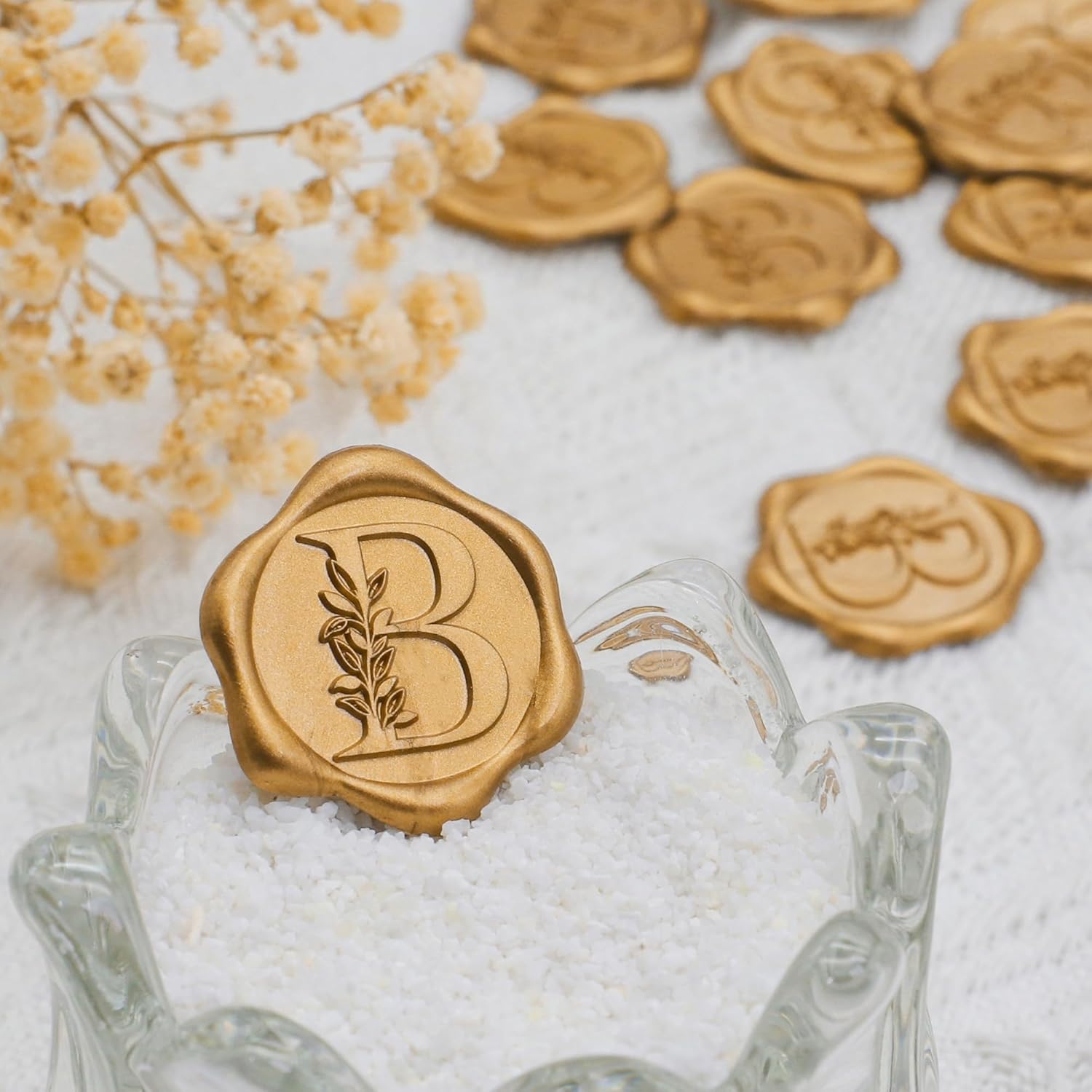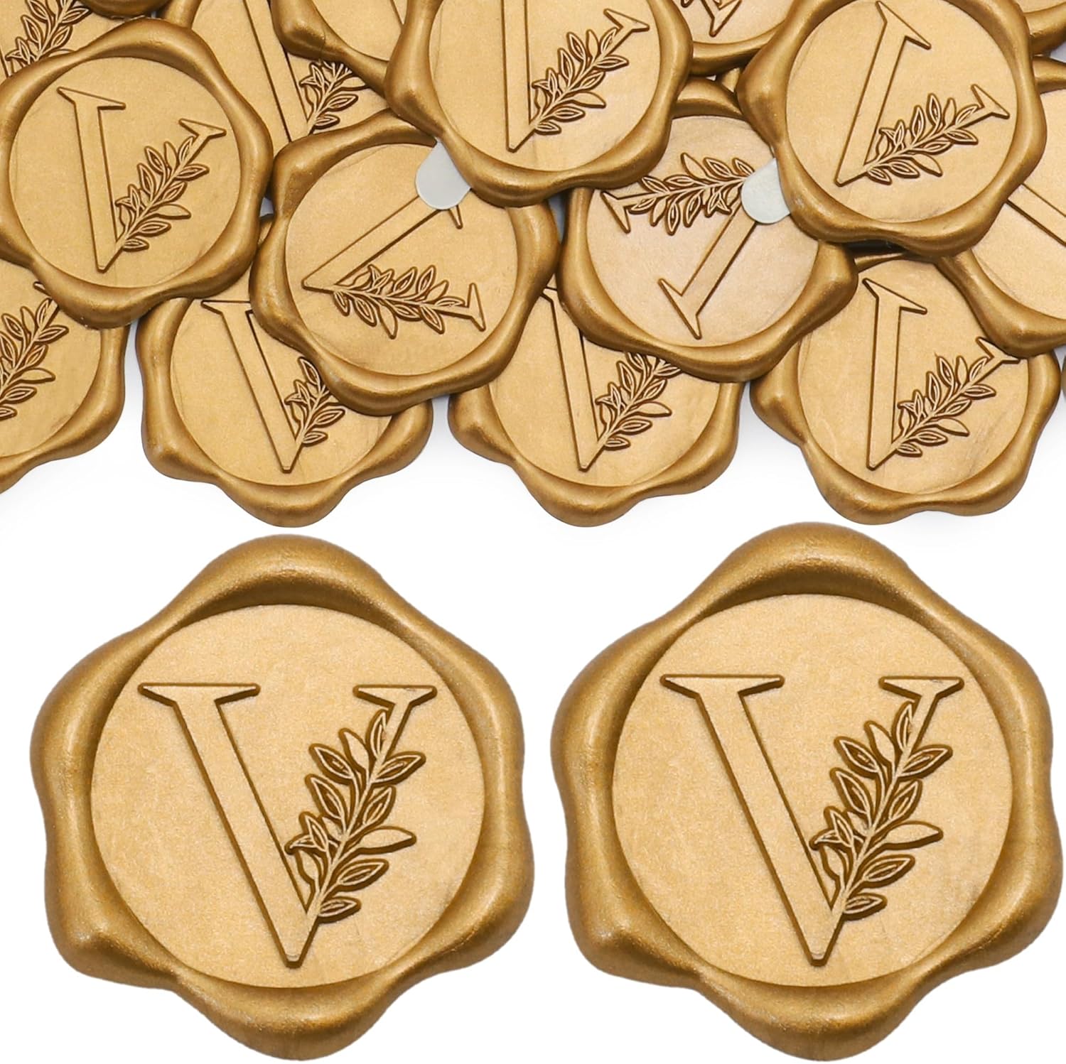 SWANGSA 200Pcs Vintage Botanical Leaves Letter Wax Seal Stickers Pattern: Letter B Color: Antique Gold Material: Composite Lacquer Wax Size: Diameter: 1.2''/3cm; Thick: 0.08''/0.2cm Package Includes: 200 Pack Self-Adhesive Letter Wax Seal Stickers Feature: Retro, Exquisite & Romantic Self-Adhesive design Waterproof Not easy to wear and tear Easy to use Application: Suitable for decorating wedding invitation, party invitation, card, gift package, envelop, postcard, and more.