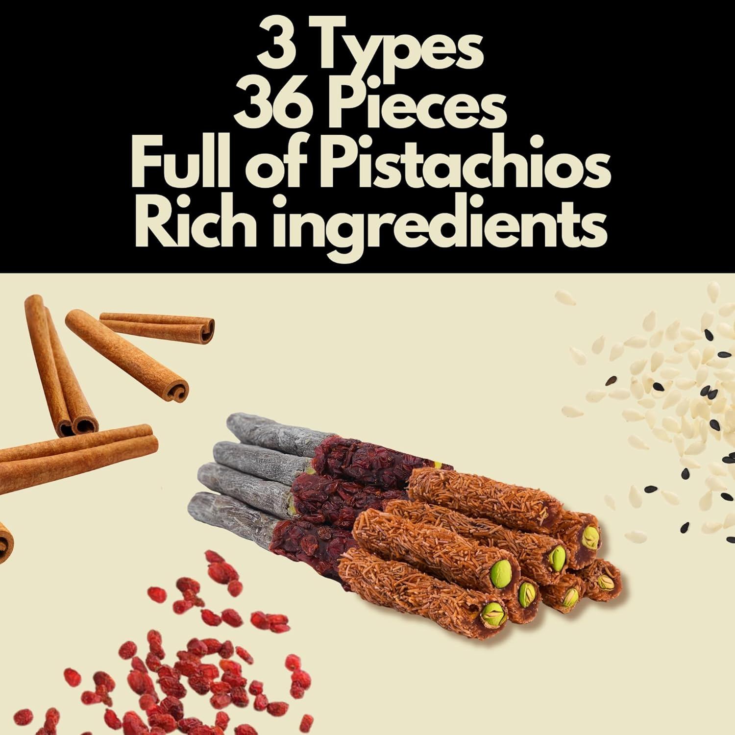 | Flavor | Cinnamon, Zereshk, Sesame |